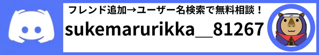現在ディスコード(アプリURL:https://discord.com/)での個別無料相談(メッセージ/通話選択可)を行っております。お気軽にどうぞ🍵(助手の助丸が受付になります)